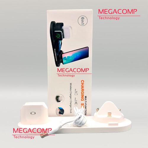 Soporte de cargador inalámbrico, 6 en 1 estación de carga inalámbrica multifunción para Apple Watch Airpods, Qi Fast Wireless Charger Holder Pad para iPhone 11 Pro Max X XS XR y Smartphone (blanco)